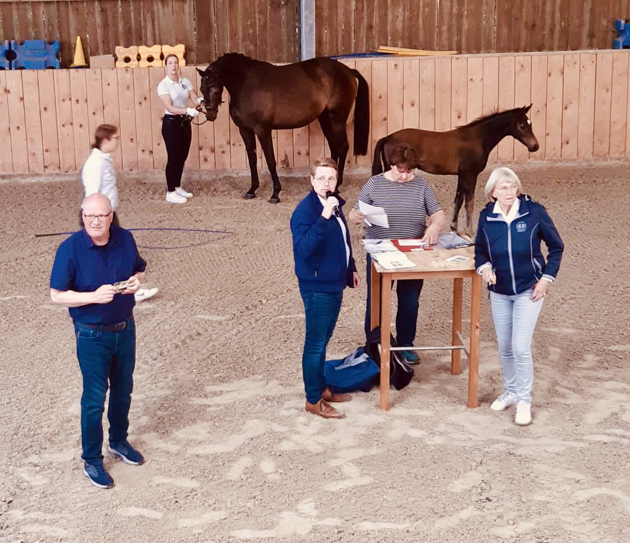 Vier qualitätsvolle Fohlen der Hengste Imperio, Kros, Schwarzgold und Eichengold wurden präsentiert und hatten Ihren ersten großen Auftritt vor der Musterungskommission um Frank Martens-Bruns, Gisela Gunia und Björn Hanke, sowie den Zuschauern, die den Musterungsplatz sehr gut besucht hatten.
